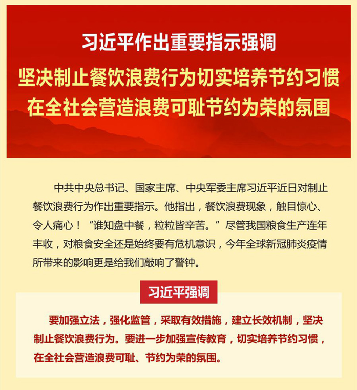 宣傳和貫徹落實習(xí)近平總書記對制止餐飲浪費行為重要指示精神
